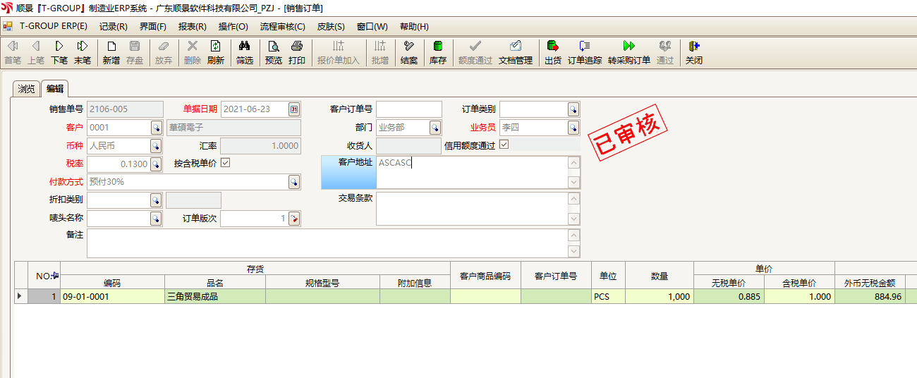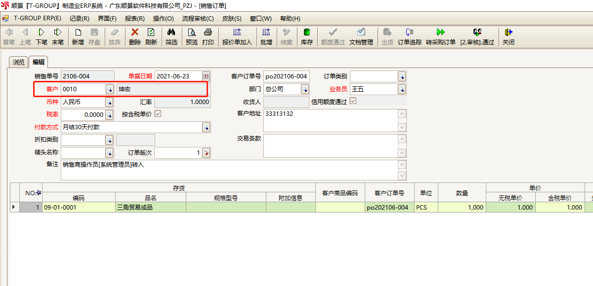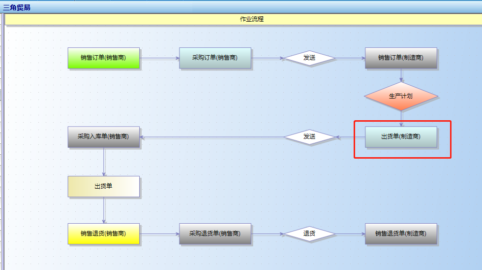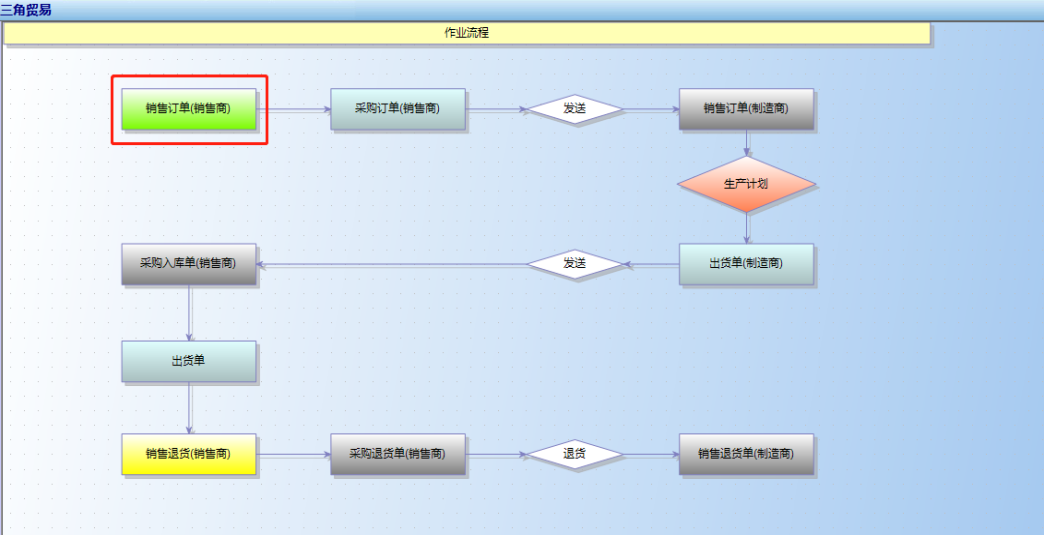2.進入到三角貿(mào)易銷售訂單(制造商)界面: