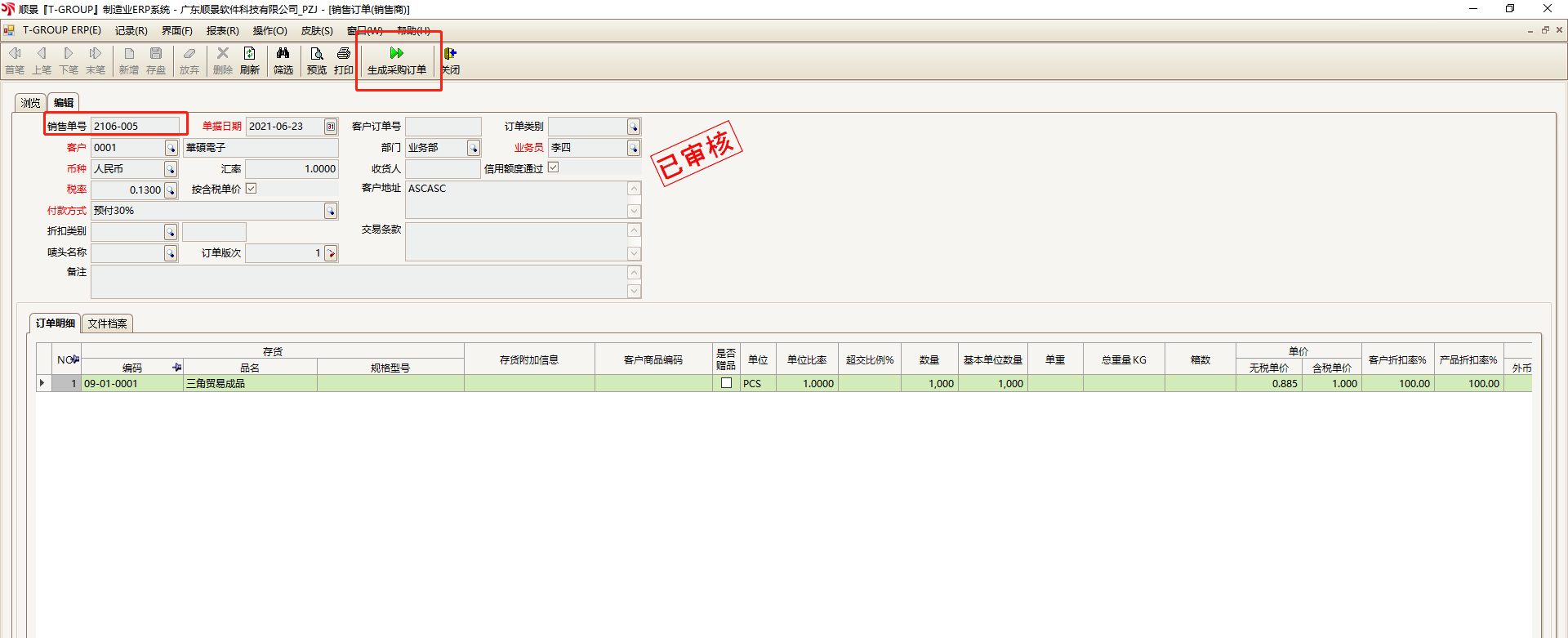 3. 將此銷售訂單生產(chǎn)成一張采購訂單
