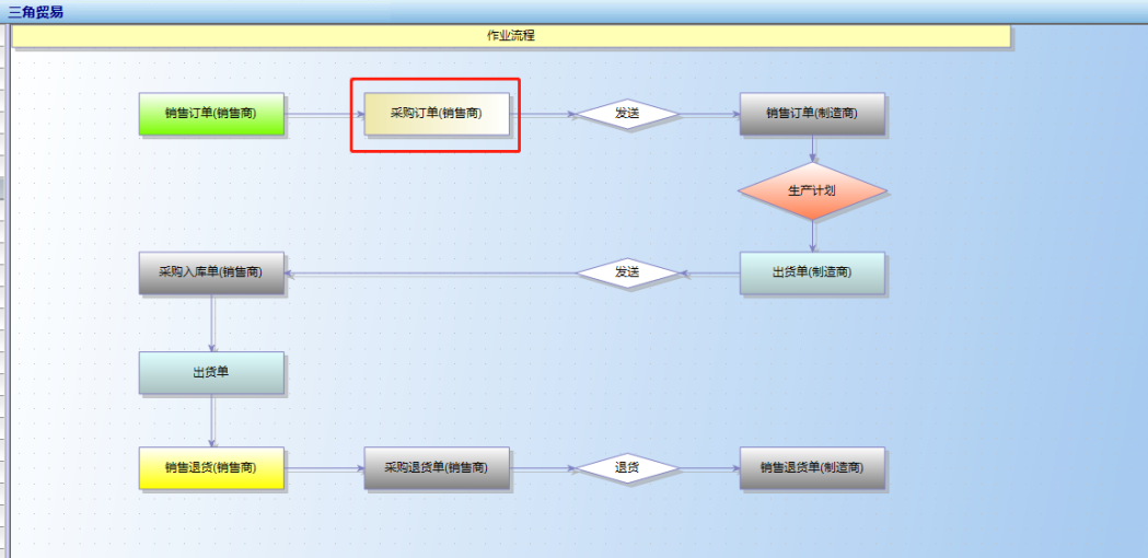 首先,三角貿(mào)易大多是跨域公司或者多個公司才會用到的功能,例如A公司總部在北京,它還有幾個分公司,分別在其它的區(qū)域,這時候相互貿(mào)易或者信息共享的時候會產(chǎn)生數(shù)據(jù)關聯(lián),這時候就要用到多角貿(mào)易邏輯;