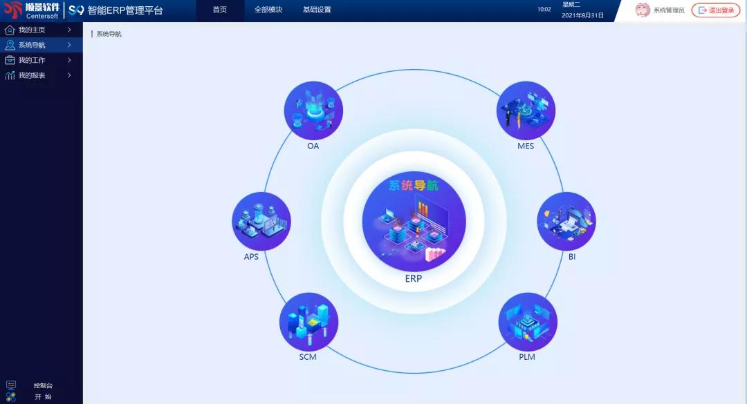 新增「系統導航」系統,用戶可以通過此界面,實現使用順景軟件產品的各系統間單點登錄,方便用戶在ERP平臺里,快速實現各系統間登錄應用