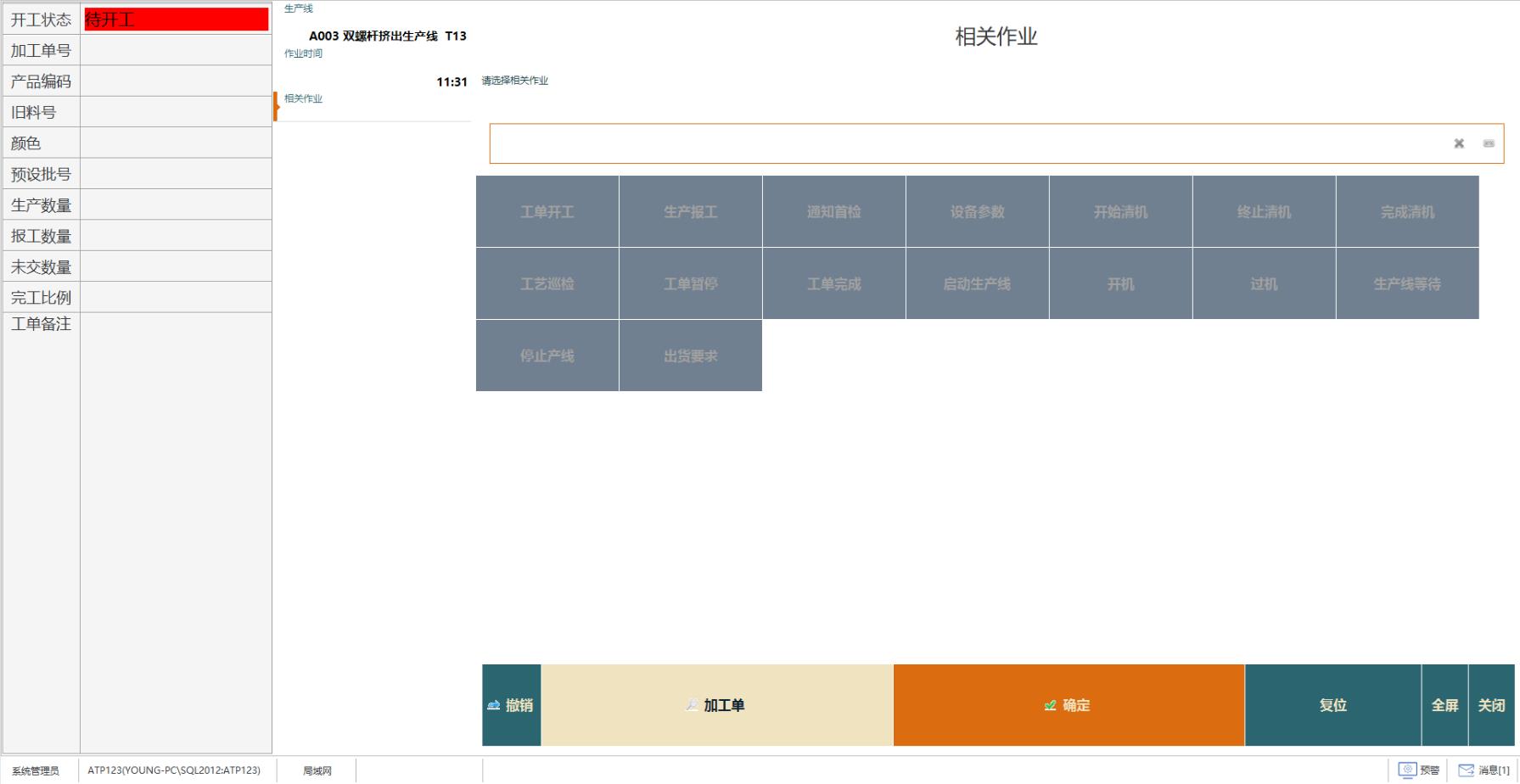 順景S9 ERP和擠出車間密煉機等產線設備建立通信通道,系統會按照上一單的生產顏色給出清機級別、清機部位及清機時間,并在系統種監控和記錄開始清機、完成清機、清機人、清機點位、清機時間等數據,清機完成后,只要在產線控制頁面點“開工”,即可導入開機參數,由系統調取設備參數庫調好機臺,并監控設備運行,如有參數超出正常范圍,S9ERP會進行報警并提示是否中止產線運行,系統也每半小時生成一次品質巡檢、工藝巡檢任務,并抓取機器運行各項參數數據保存到系統,這樣每一訂單生產過程的設備運行參數,有否異常等生產記錄都會保存在系統中,實現了完整的品質追溯和生產過程監控。