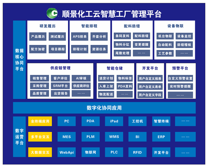 本次順景參展產(chǎn)品是新一代化工云,順景化工云智慧工廠管理平臺對化工新材料工廠普遍存在的配方保密、研發(fā)履歷、計劃排程、配料防錯、自動配料、品質(zhì)追溯等關(guān)鍵工藝環(huán)節(jié)提供完美管控和專業(yè)服務(wù),大幅提升應(yīng)用效果。于研發(fā)技術(shù)人員而言,可真正幫助解放雙手和大腦,減少無效和重復(fù)性勞動,簡化溝通流程,規(guī)避常規(guī)型錯誤,做到研發(fā)全流程數(shù)據(jù)科學(xué)存儲歸檔,實(shí)現(xiàn)可追溯、可對比、可總結(jié)、可加密、可恢復(fù)、自動優(yōu)化配方、單向傳輸數(shù)據(jù)等,與生產(chǎn)管理無縫銜接。于整個工廠而言,最終實(shí)現(xiàn)質(zhì)量可追溯、設(shè)備可感知、過程可管控、錯誤可避免、數(shù)據(jù)可分析、經(jīng)驗(yàn)可學(xué)習(xí),幫助企業(yè)實(shí)現(xiàn)提質(zhì)、降本、增效。